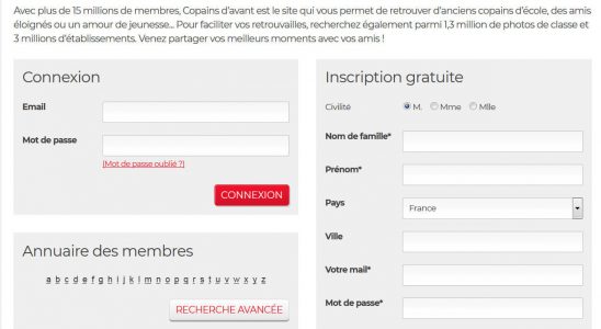 Copains d’avant est un site communautaire qui a pour mission de vous mettre en contact avec vos anciennes connaissances perdues de vus : Camarades de classe, collègues de bureau, parents…